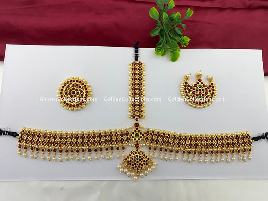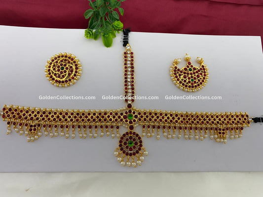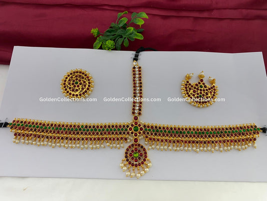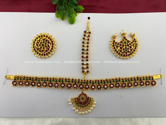 Whether you prefer minimalist designs or ornate embellishments, GoldenCollections offers a diverse selection of Bharatanatyam headsets to suit every dancer's preference. Shop now and adorn yourself with the elegance and charm of our Bharatanatyam jewellery headsets.