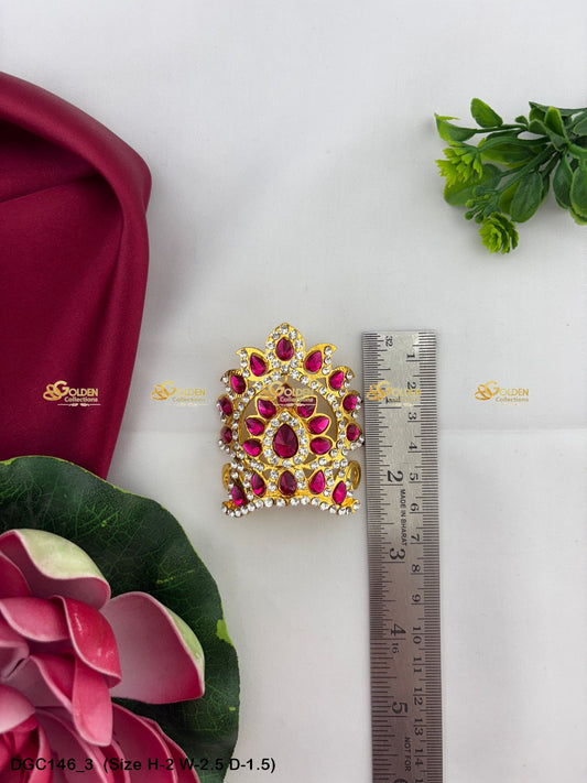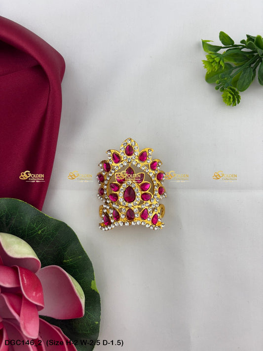 GoldenCollections presents a divine collection of Deity Crowns, perfect for adorning Hindu gods and goddesses. Our range includes Stone Crowns, Gold-Plated Crowns, Drama Crowns, and Deity Hair Crowns, meticulously crafted to enhance temple idols and home worship decor.