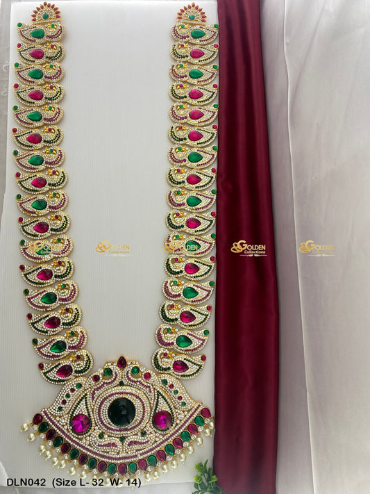 Whether you're looking for a long haram for Lakshmi, Saraswati, or Durga, our collection provides the perfect accessory to elevate your deity statues. Each deity necklace reflects the sacred essence of Hindu traditions, making it an ideal gift for spiritual leaders, temples, or religious ceremonies.