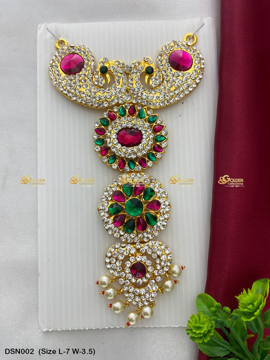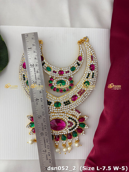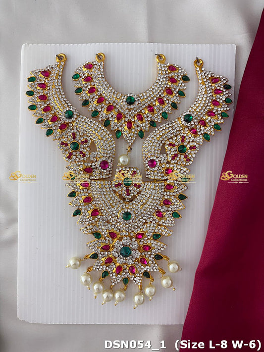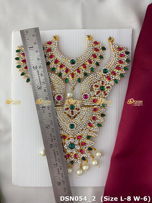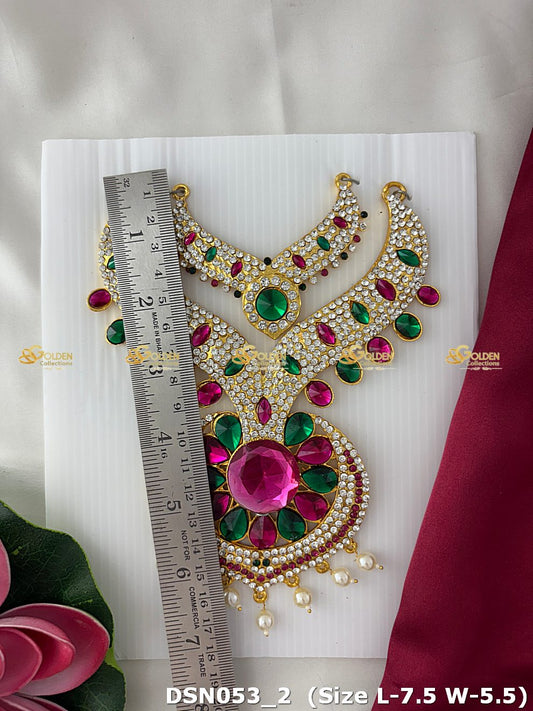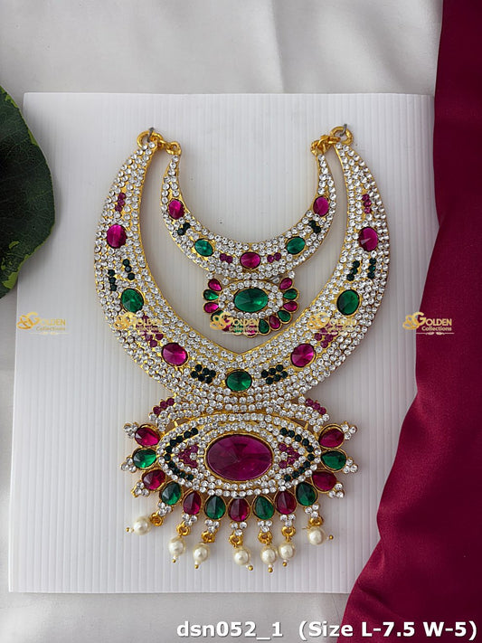 At GoldenCollections, we bring you a divine collection of Short Haram for God Idols and Hindu Goddess Short Necklaces, designed specifically for temple rituals, deity adornment, and sacred worship. Each piece is handcrafted with intricate details, making it a perfect addition to your Varalakshmi Vratham, Lakshmi Pooja, or any Hindu religious ceremony.