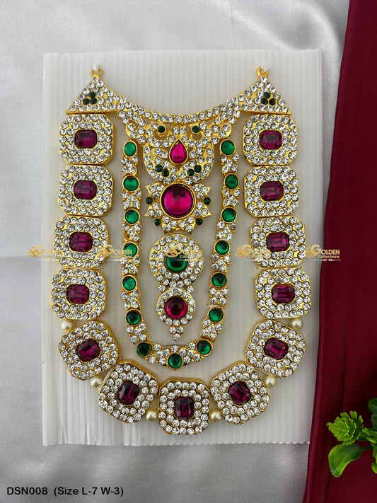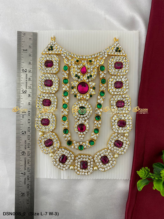 At GoldenCollections, we bring you a divine collection of Short Haram for God Idols and Hindu Goddess Short Necklaces, designed specifically for temple rituals, deity adornment, and sacred worship. Each piece is handcrafted with intricate details, making it a perfect addition to your Varalakshmi Vratham, Lakshmi Pooja, or any Hindu religious ceremony.