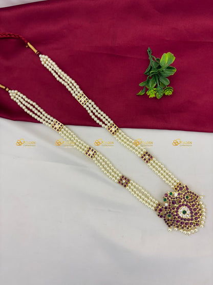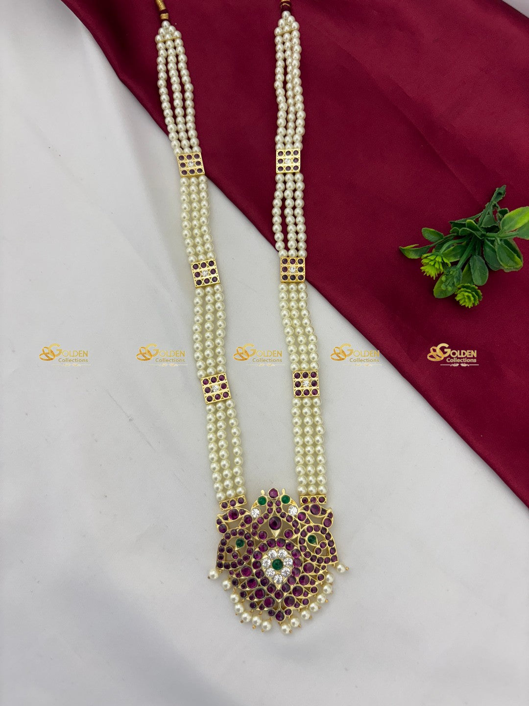 Antique Temple Jewelry Set for Marriage: Long Necklaces for Women. Our Antique Temple Jewelry Set is the perfect choice for bridal wear, featuring long necklaces adorned with intricate temple motifs and a regal antique finish. Crafted for elegance and tradition, this set enhances bridal attire with its timeless beauty, making it ideal for weddings and special occasions.