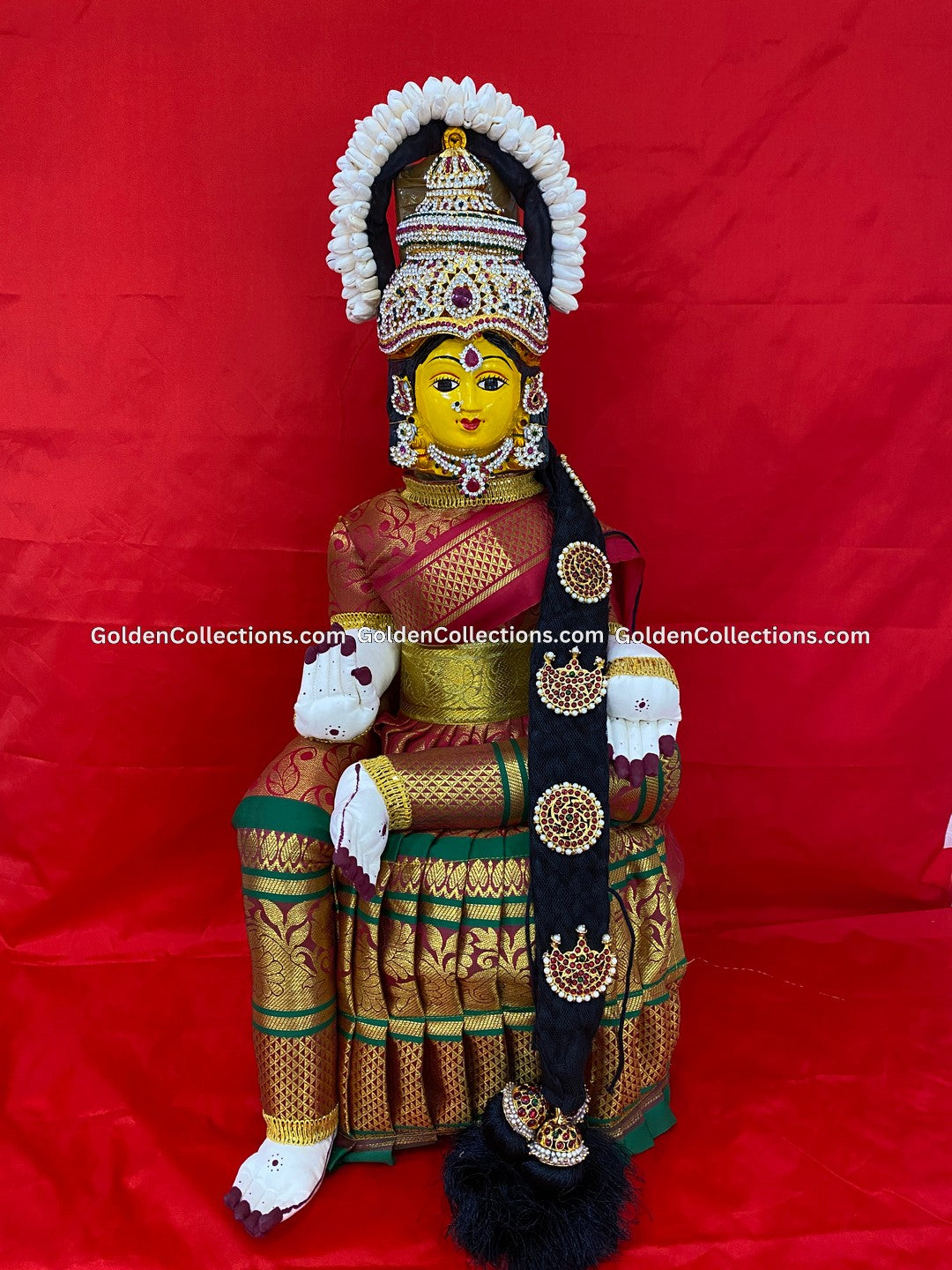 Embrace the auspiciousness of Varalakshmi Amman with this doll. Invite blessings and grace into your home from GoldenCollections.