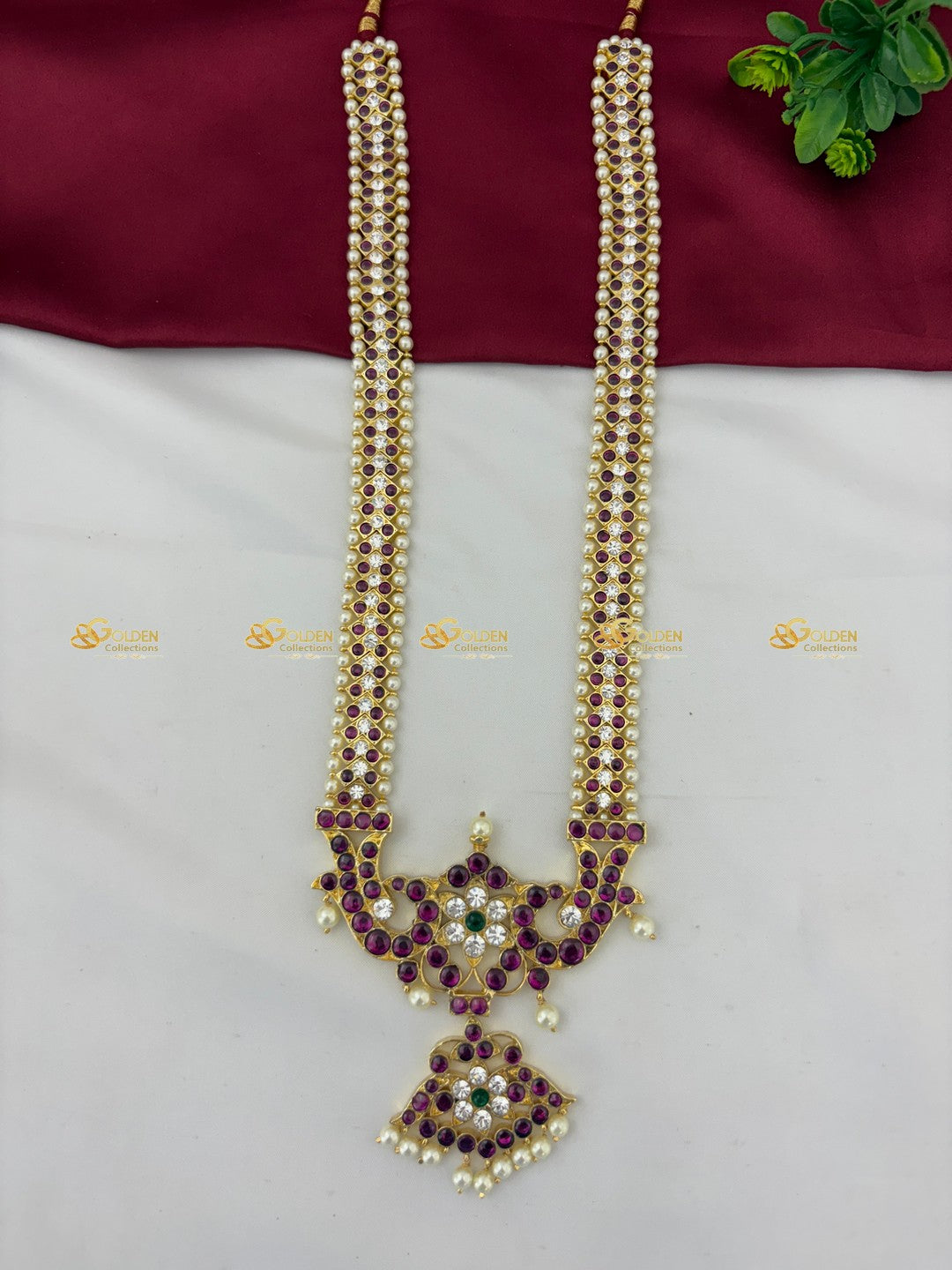 Premium quality Bharatanatyam Kemp necklace, handmade with real Kemp stones on a brass base. Traditional haram jewelry for classical dancers. Available now!