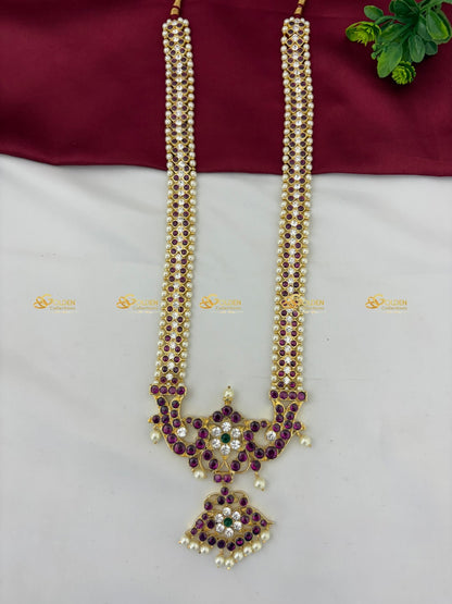 Bharatanatyam Kemp Long Necklace | Handmade Brass Dance Jewelry BBN043