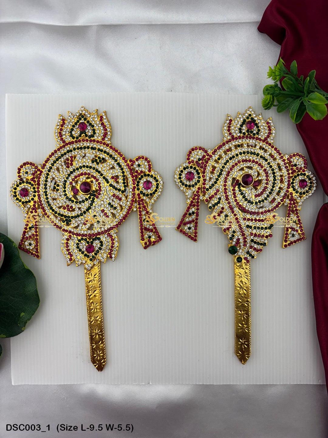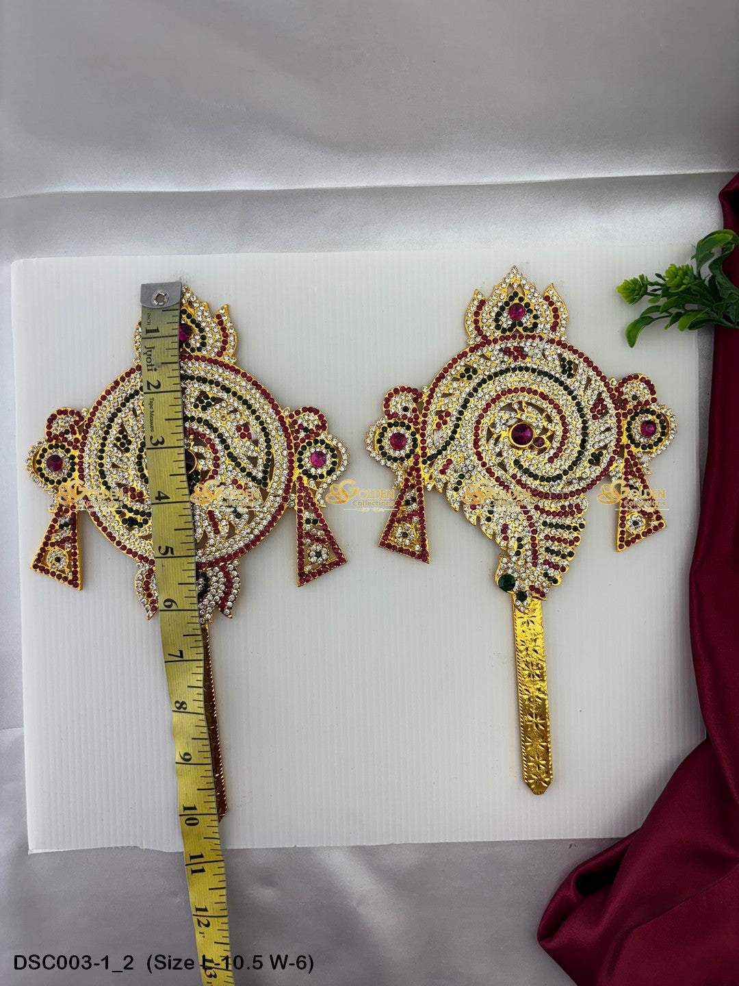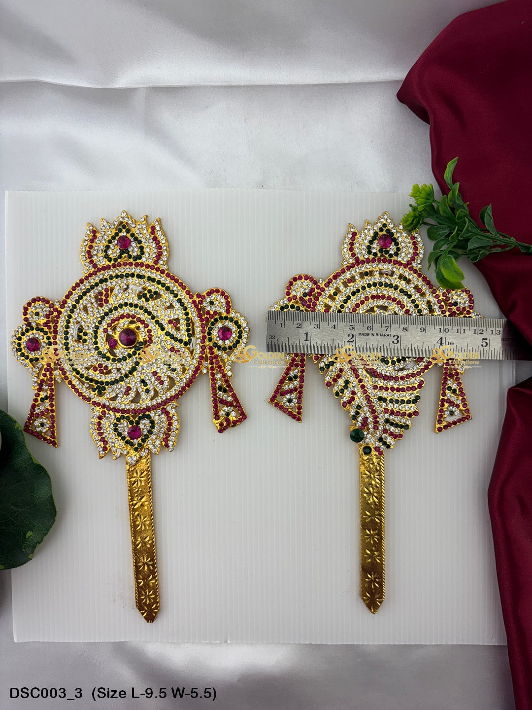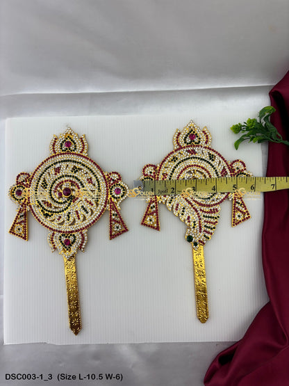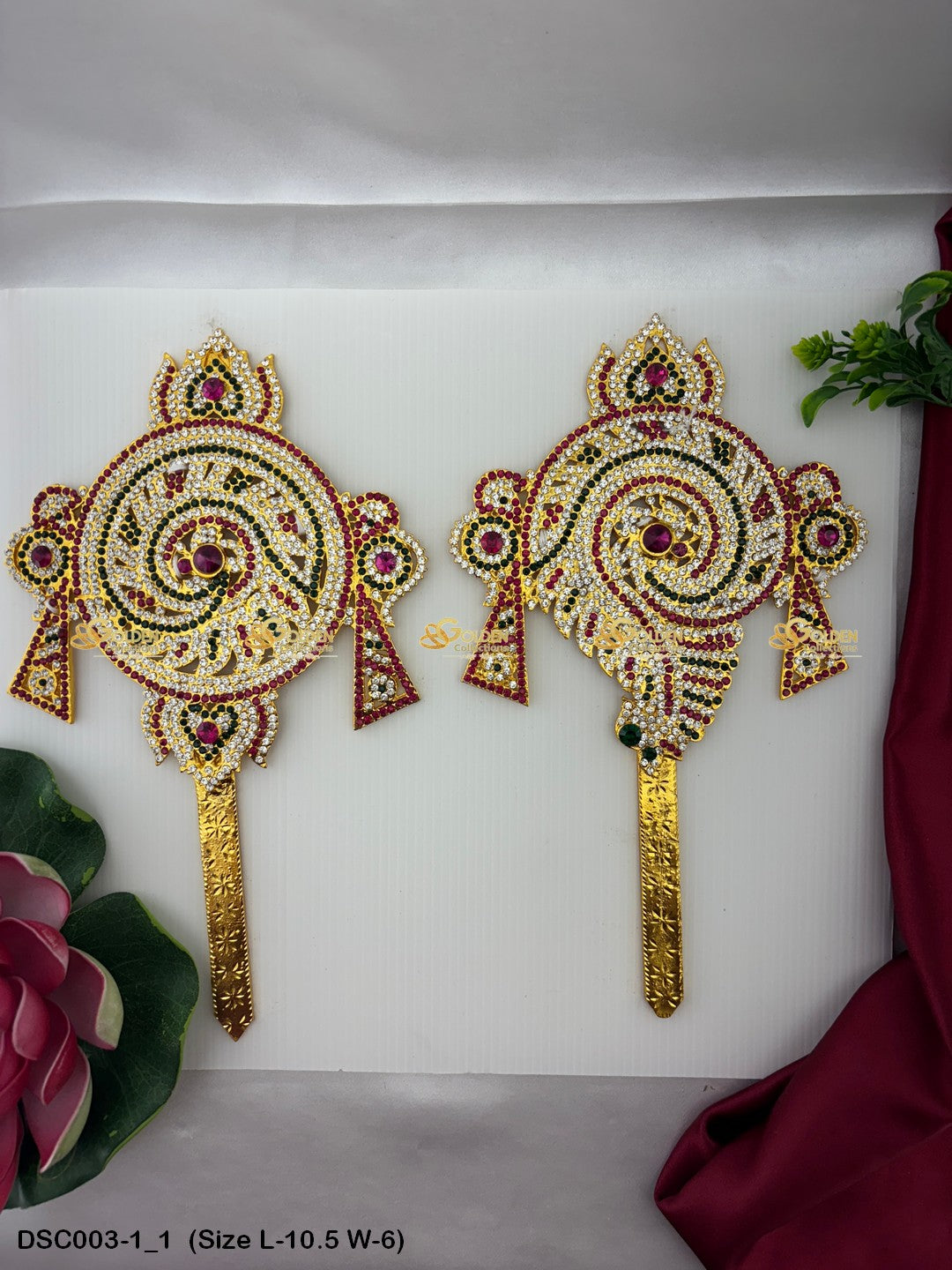 Adorn your deity with our authentic brass Shankha Chakra pair featuring stones. A symbol of Lord Vishnu’s power, ideal for temple decor.