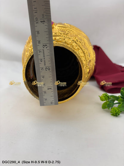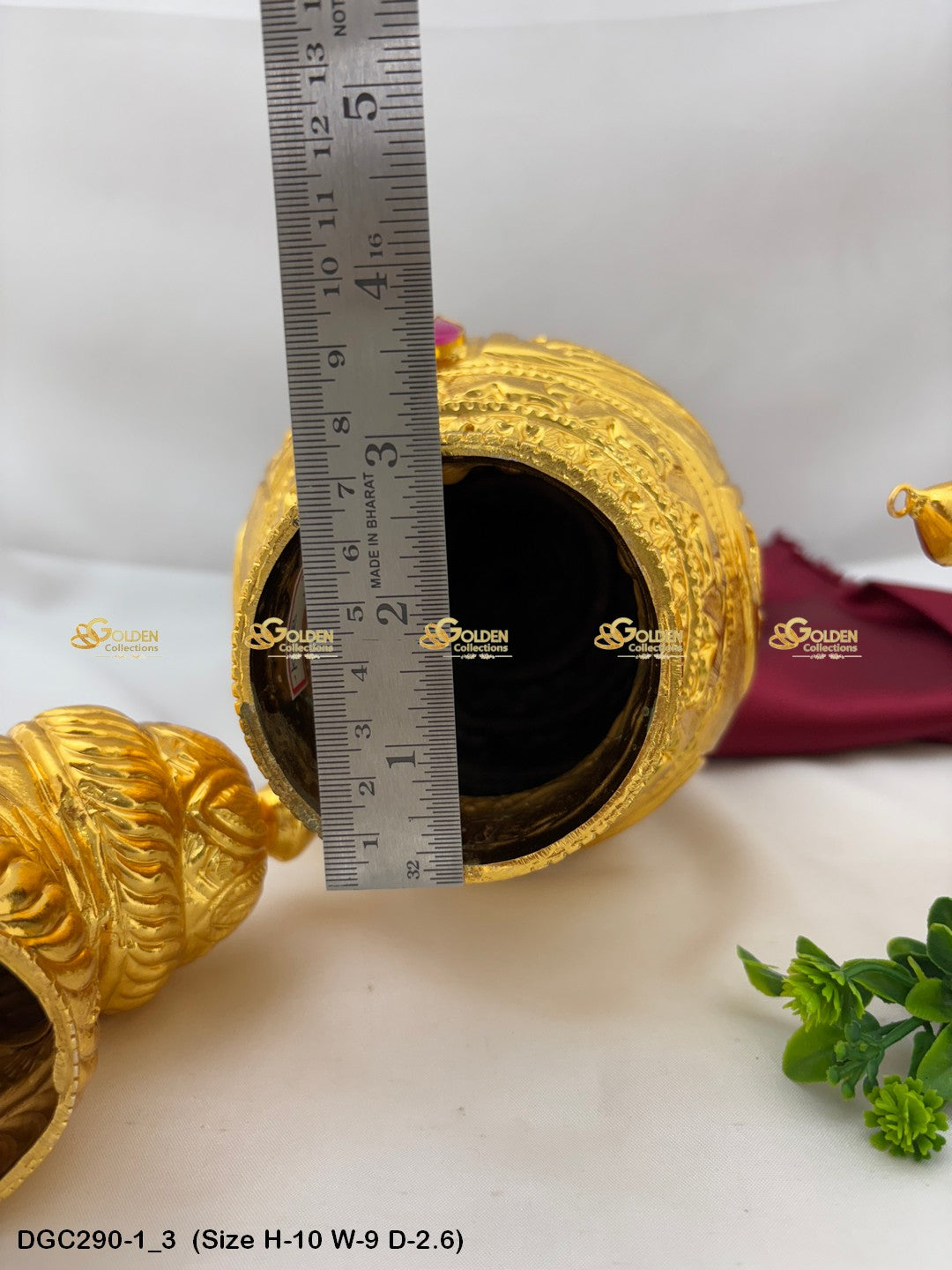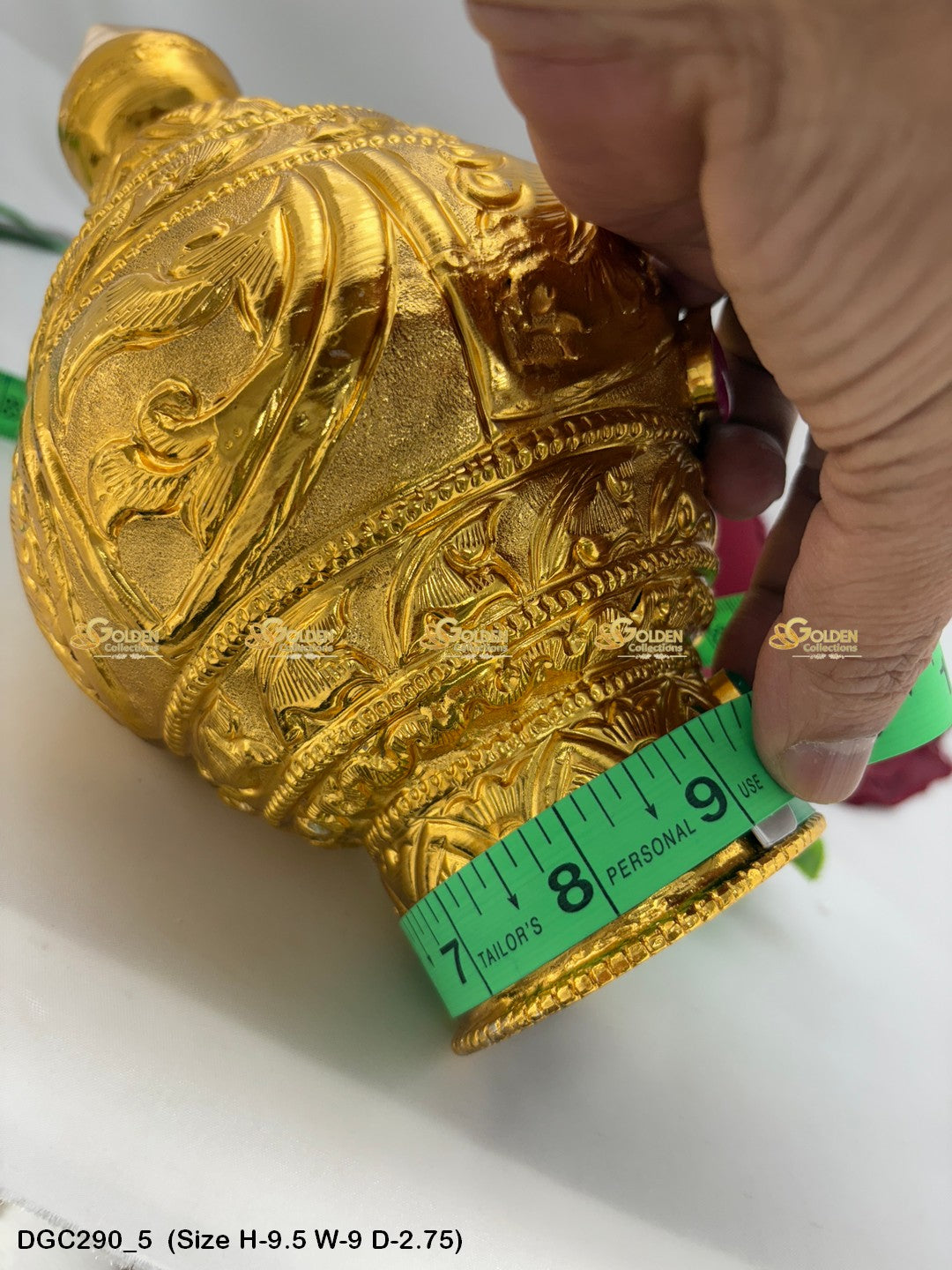 Shop a beautifully crafted gold-plated Balaji Kireetam (Vishnu Mukut). This full-round crown is ideal for Venkateshwara deity alankaram and temple decor.
