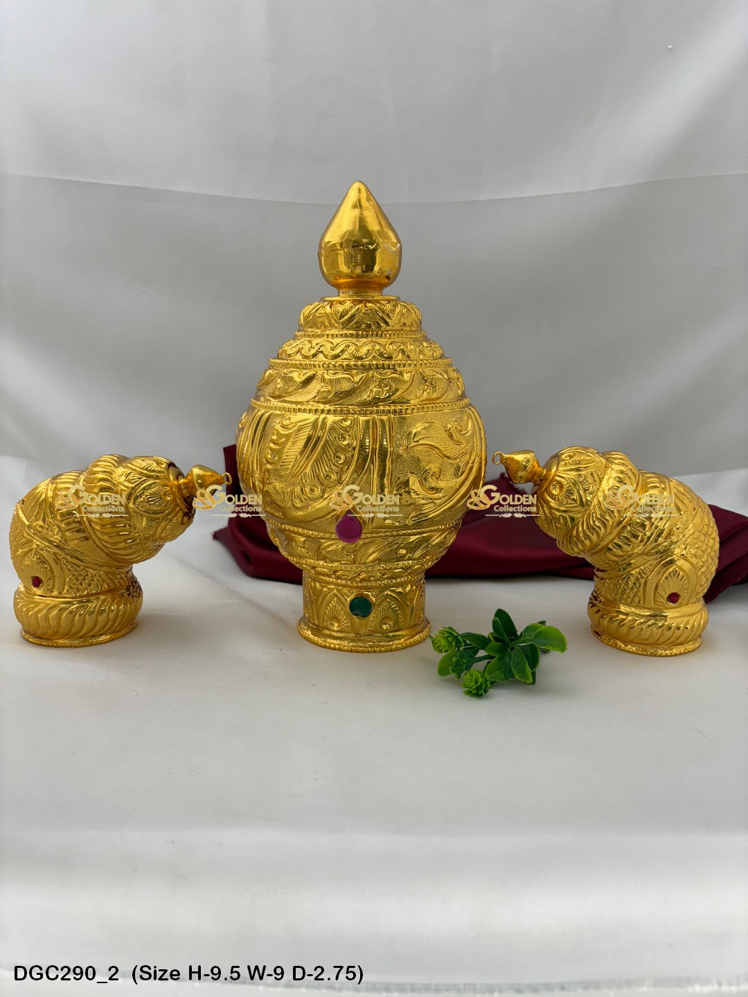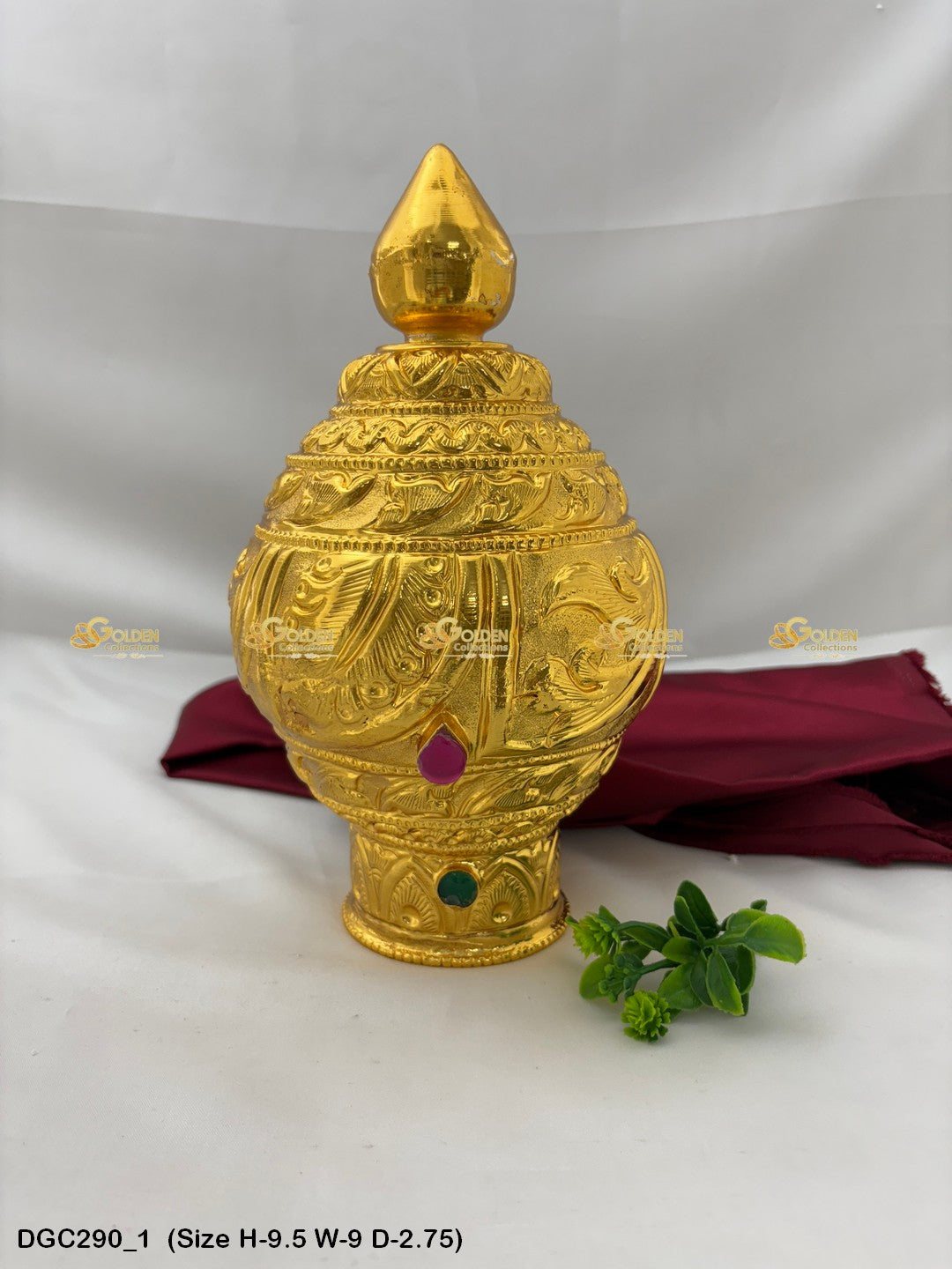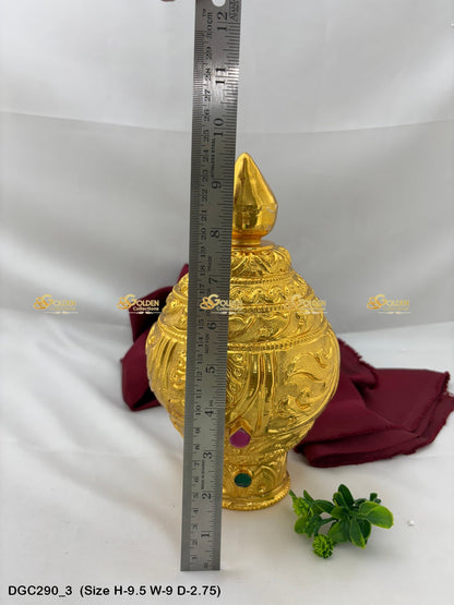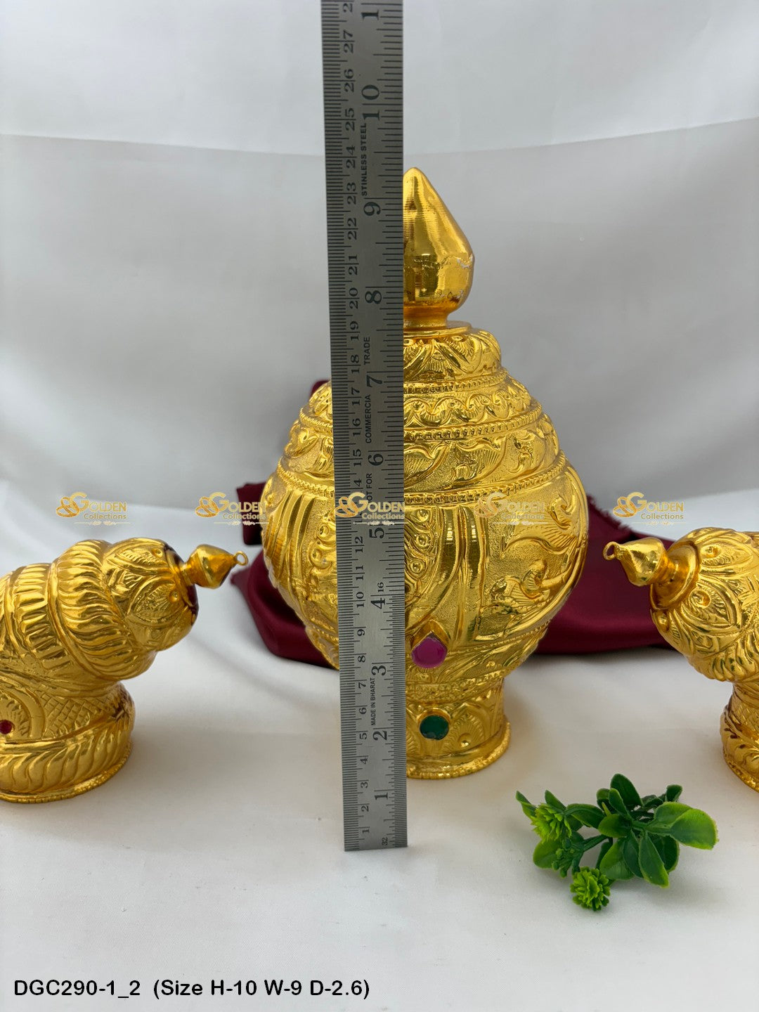 Shop a beautifully crafted gold-plated Balaji Kireetam (Vishnu Mukut). This full-round crown is ideal for Venkateshwara deity alankaram and temple decor.