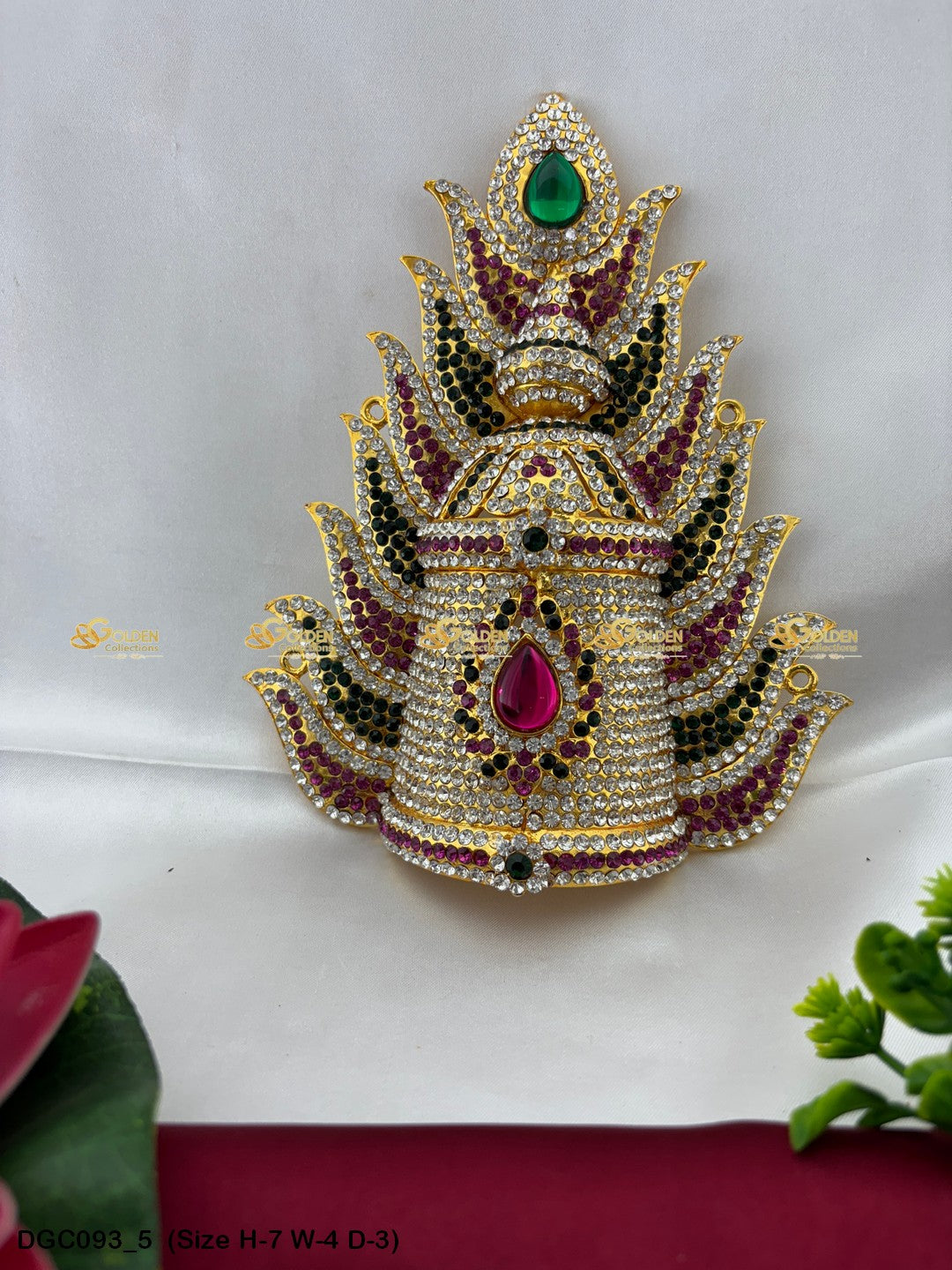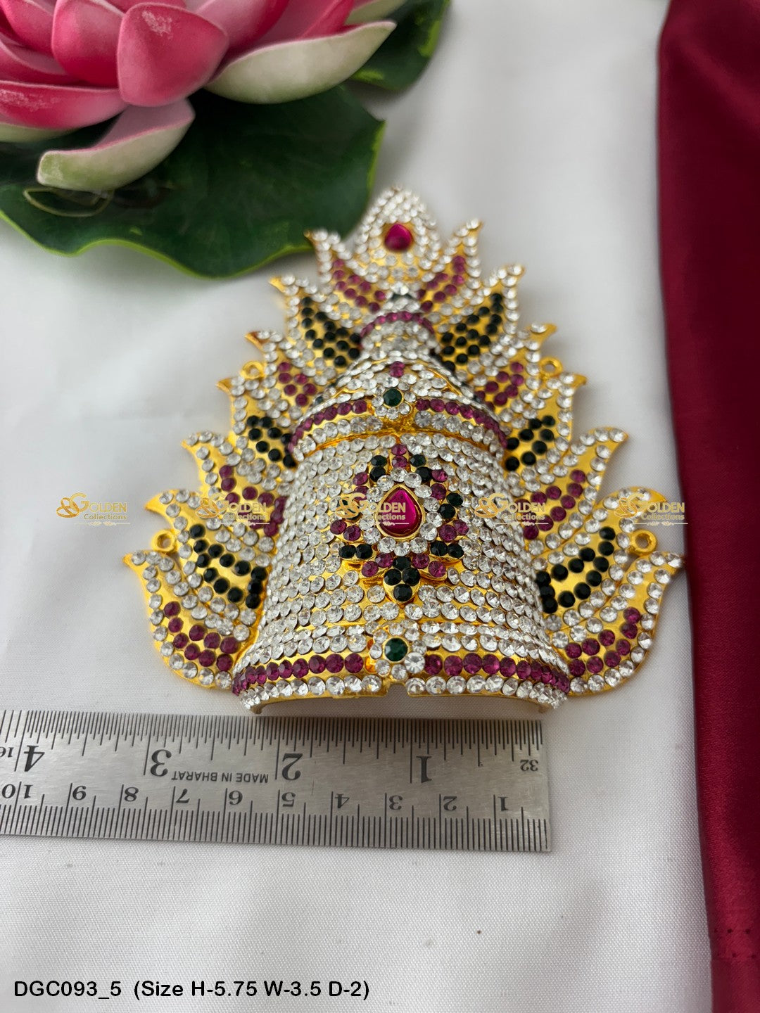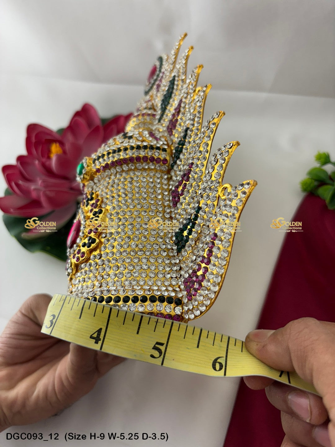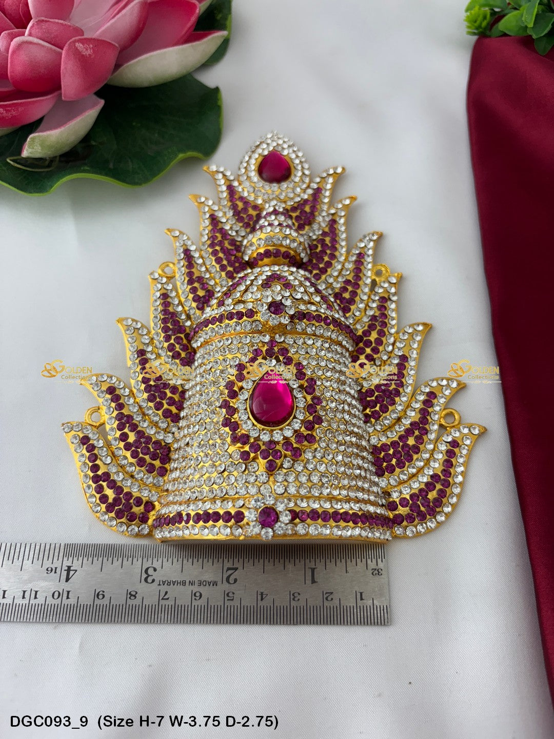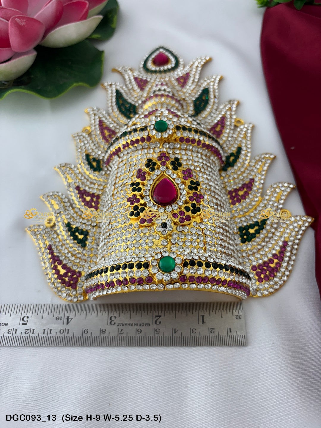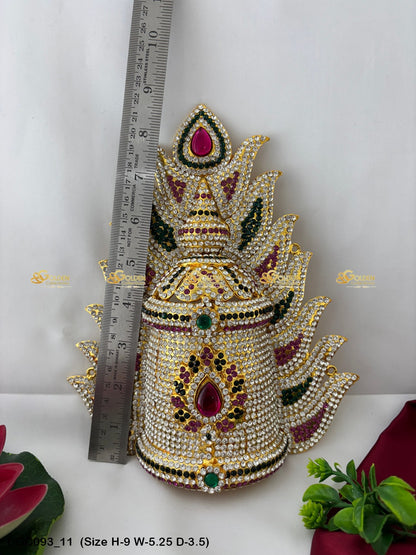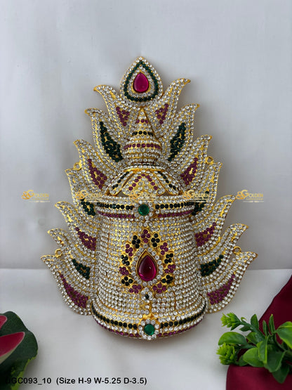 Adorn your Goddess idol with the Divine Crown from GoldenCollections. Its divine radiance and grace enhance the beauty and elegance of your deity.