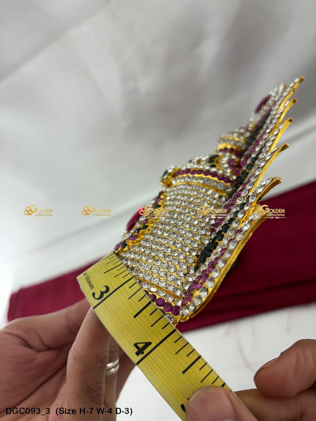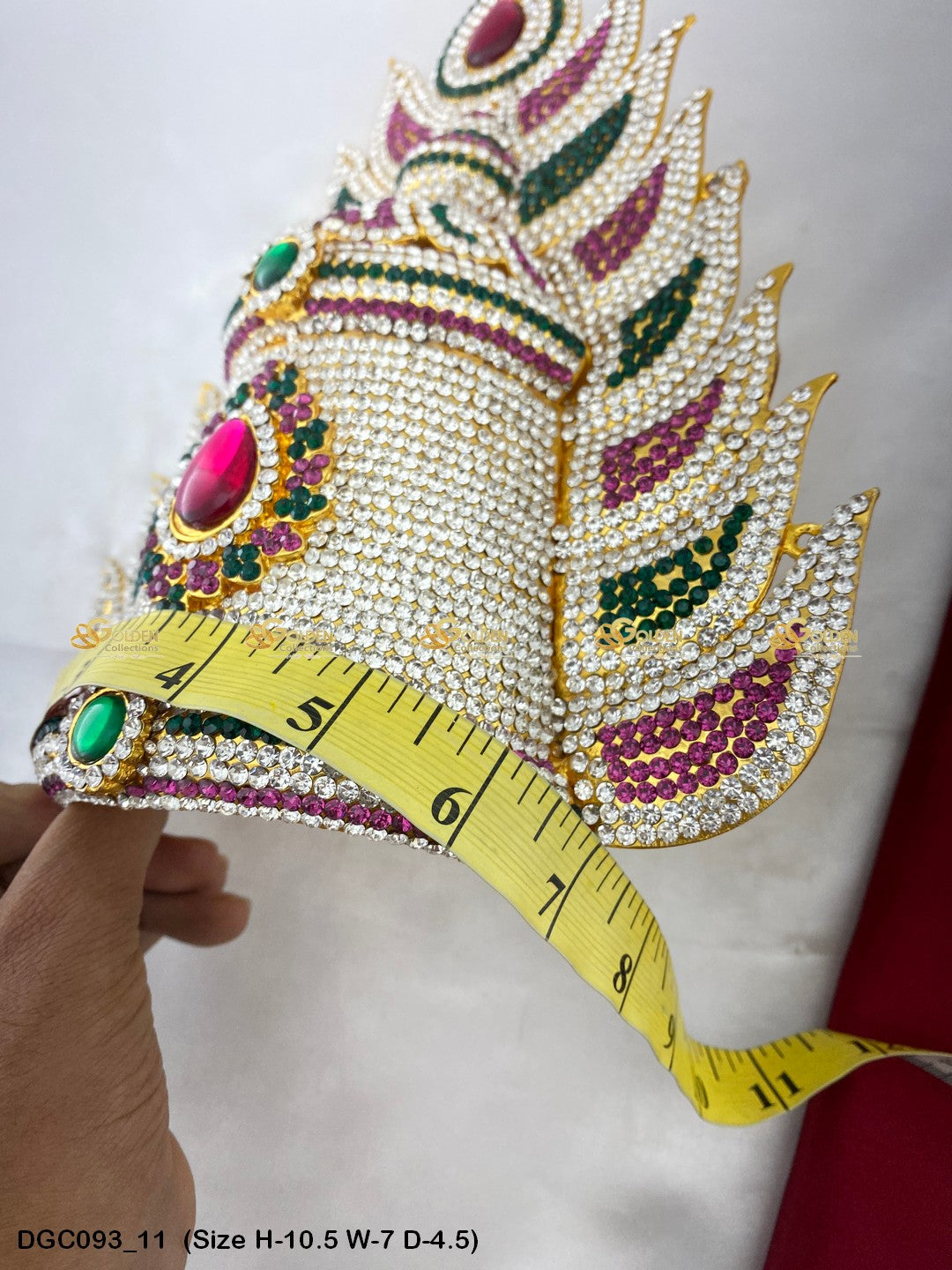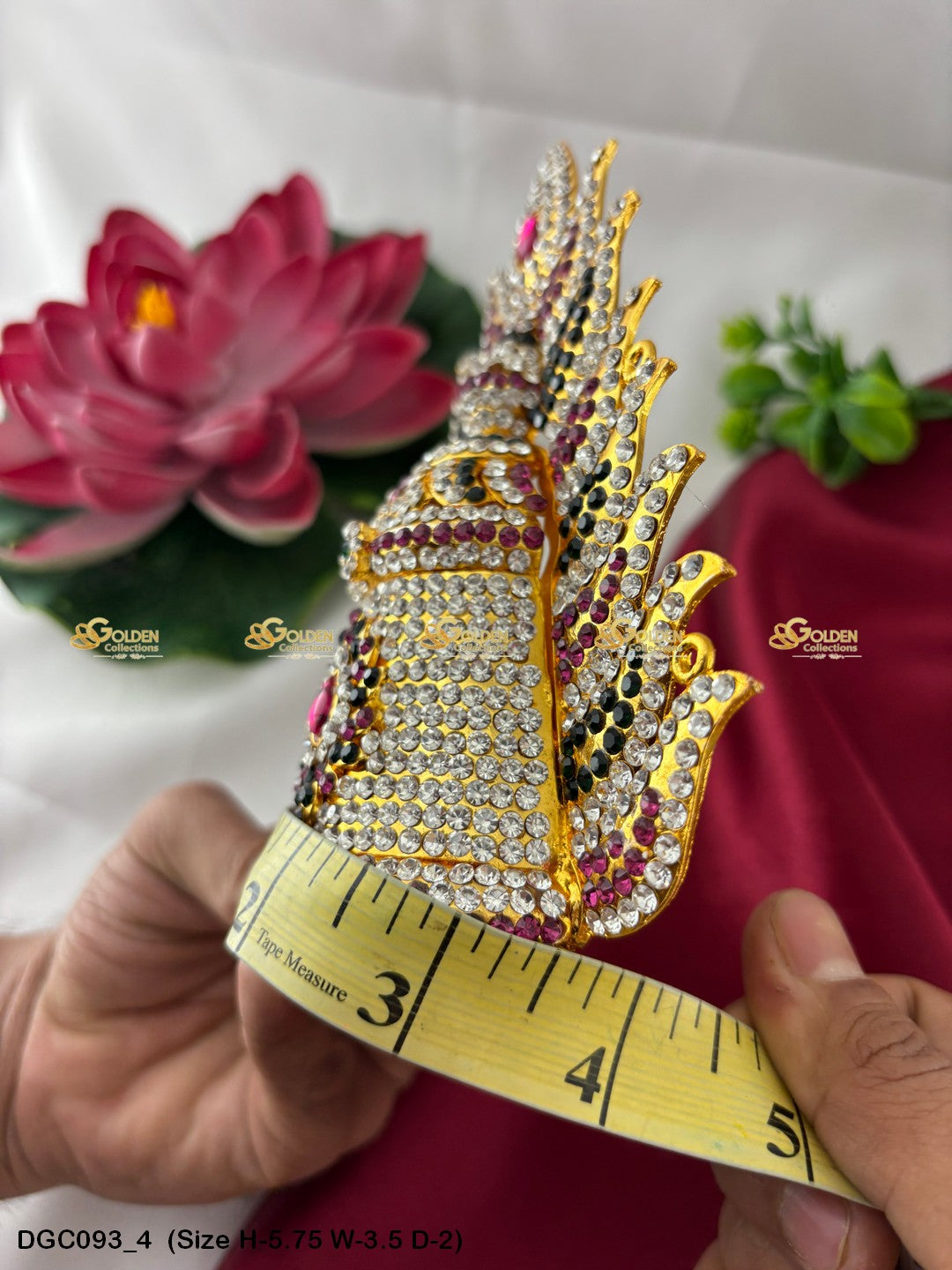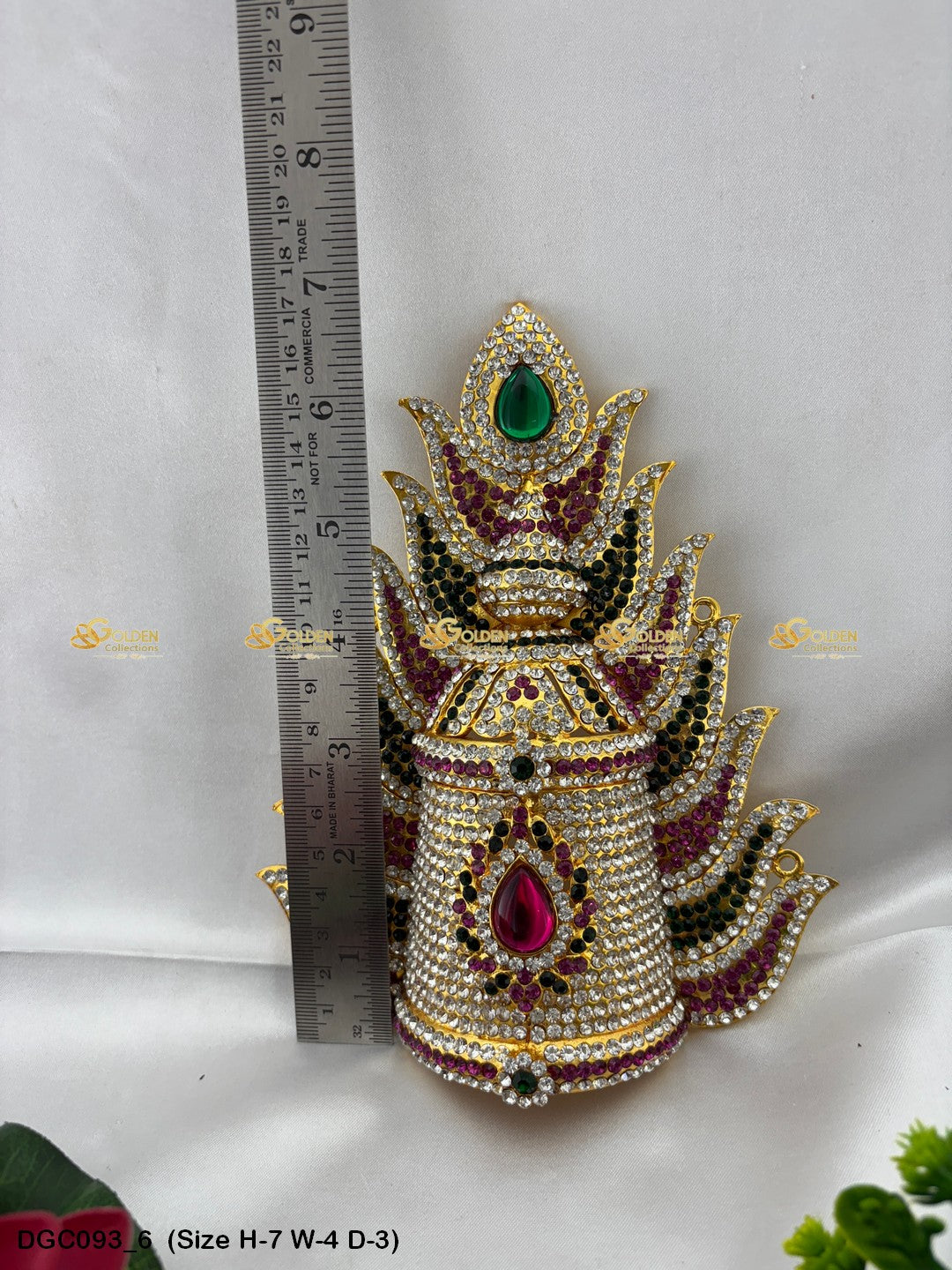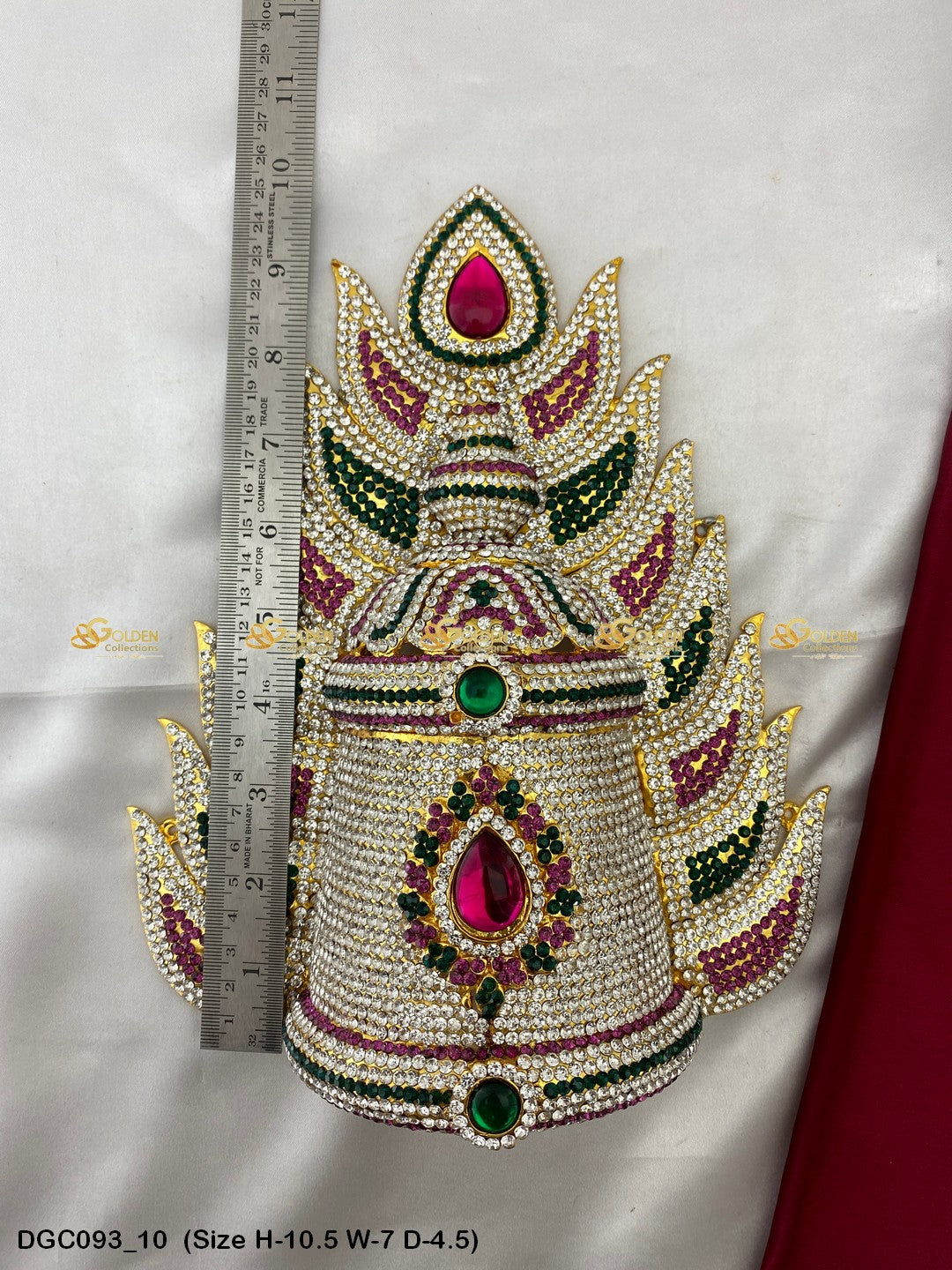 Adorn your Goddess idol with the Divine Crown from GoldenCollections. Its divine radiance and grace enhance the beauty and elegance of your deity.