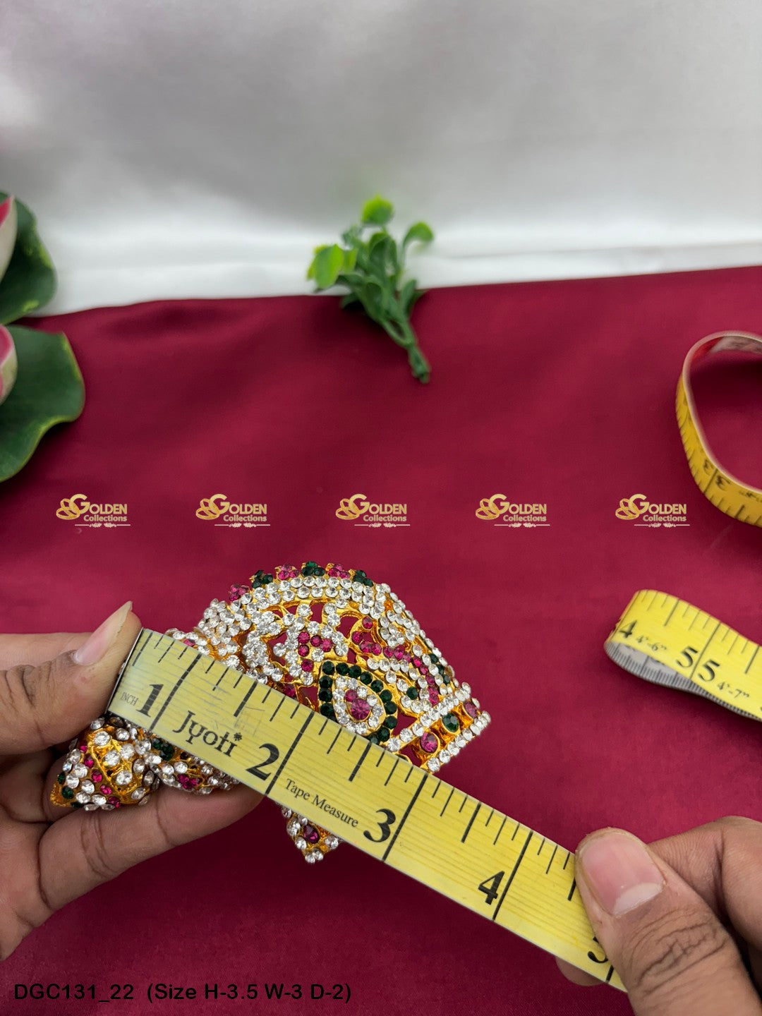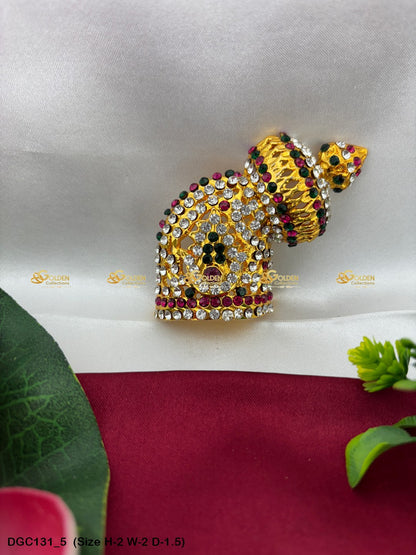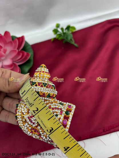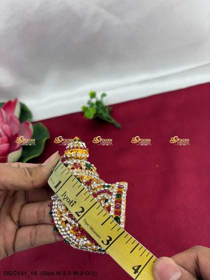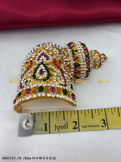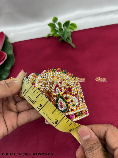 Embrace the divine beauty of this Crown Mukut designed for your deity. Crafted with utmost precision and adorned with sacred symbols, it exudes grace and divinity. Shop now and bring an aura of spirituality to your worship space.