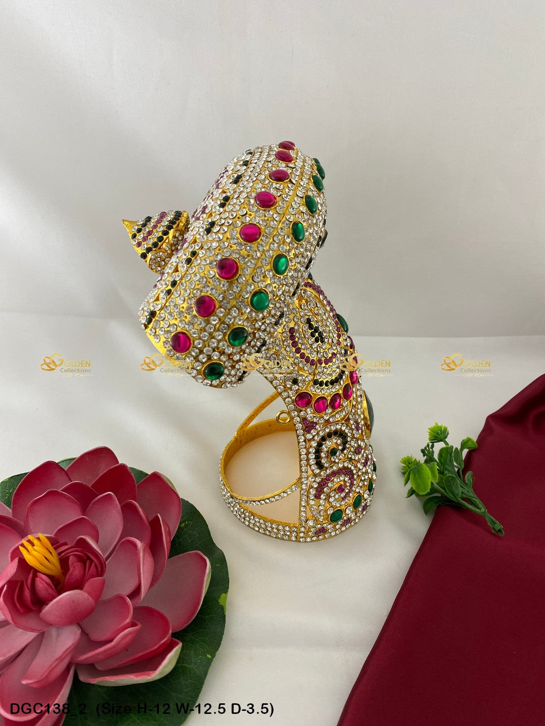 Add a touch of divinity to your Hindu Deity's appearance with this Divine Mukut Kireedam. Crafted with devotion and adorned with sacred symbols, it adds an aura of spirituality to your deity's presence. Shop now and elevate your worship rituals.