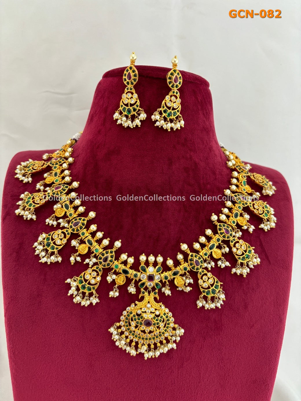 Adorn yourself with elegance with GoldenCollections' gold plated necklace and earring set, featuring exquisite designs that reflect timeless beauty and style.