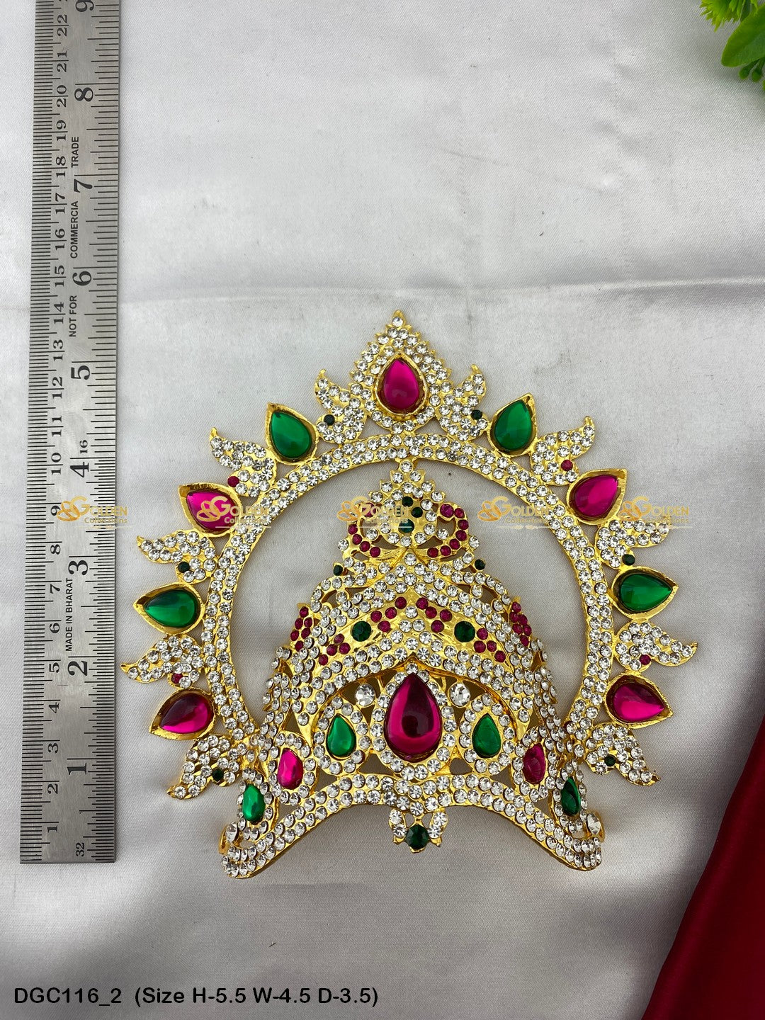 Enhance the grace and beauty of your Goddess idol with this Graceful Crown. Its delicate design and intricate details make it a perfect accessory for your deity's head. Shop now and experience the enchanting presence it brings to your worship space.