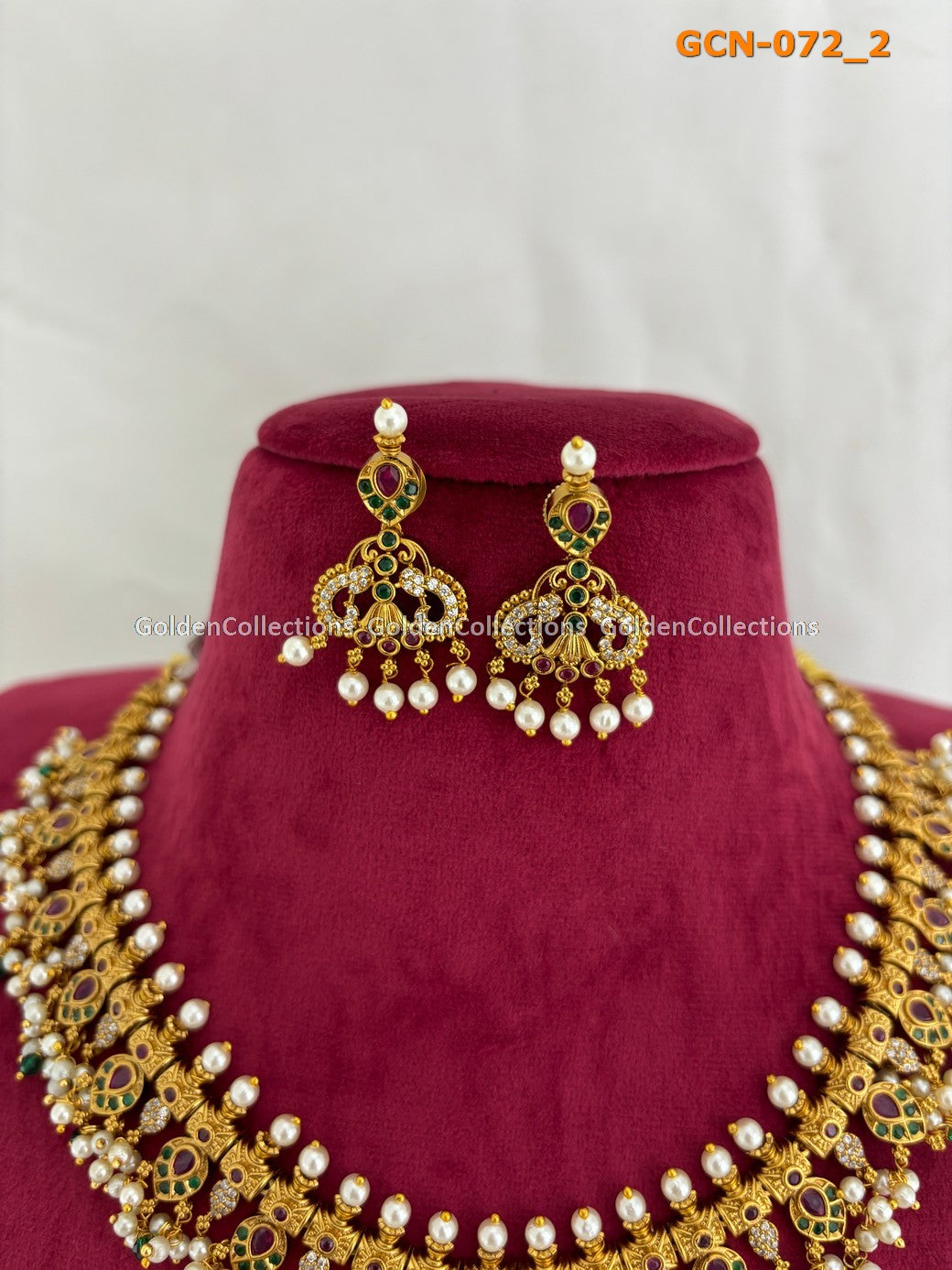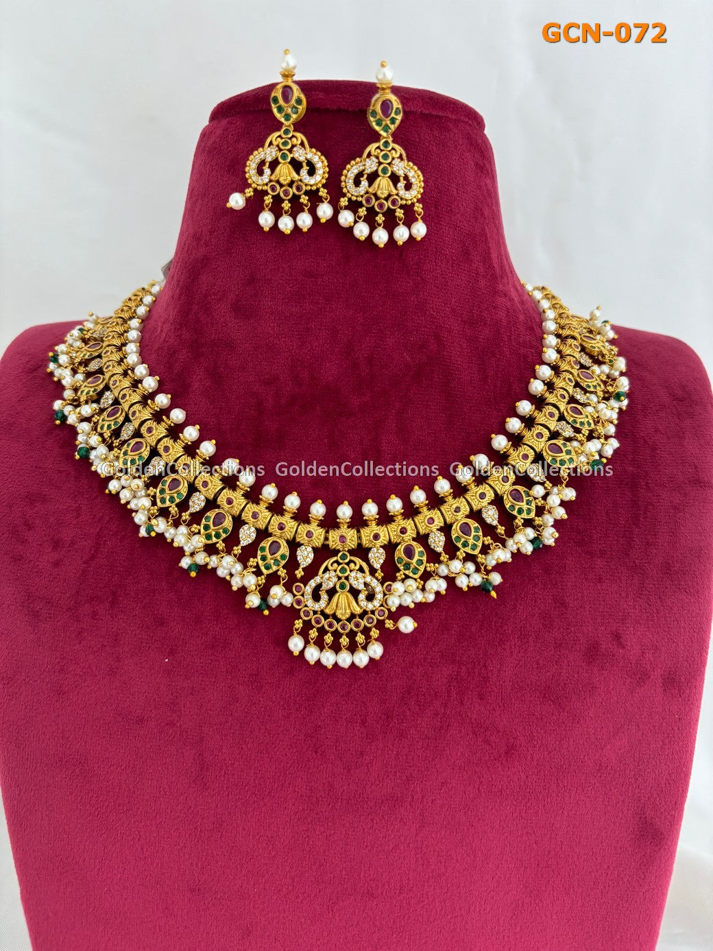 Embrace timeless beauty with GoldenCollections' guttapusalu design, showcasing necklace styles for women that exude grace and sophistication.