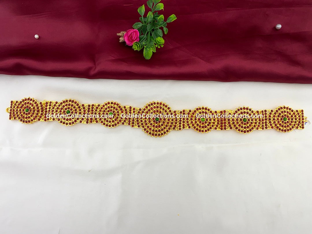 Invoke blessings with our Kempu Belt, a symbolic masterpiece for Bharatanatyam. Discover the divine touch in our Bharatanatyam Jewelry at GoldenCollections.