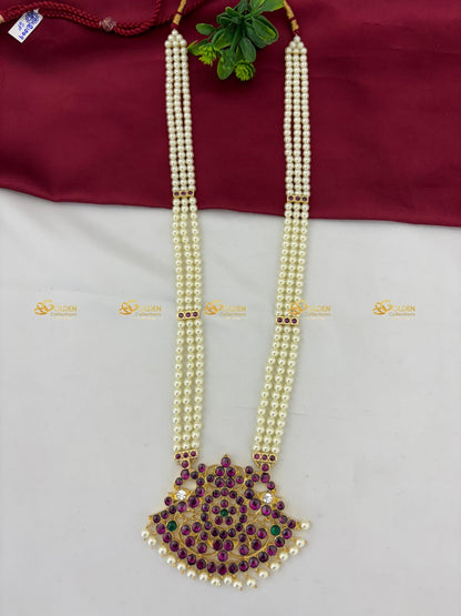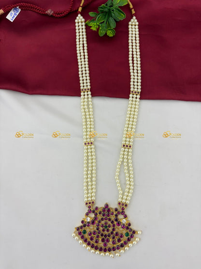 Pearl Kemp Long Necklace | Handmade Bharatanatyam Haram Jewelry BBN032