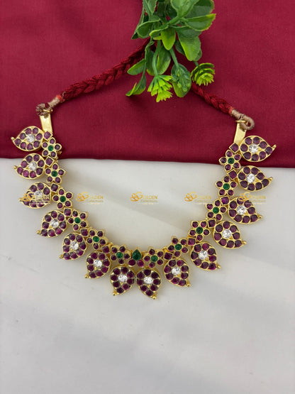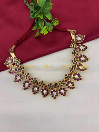 Discover a stunning Kemp short necklace with real Kemp stones. Handmade with premium brass, this elegant piece is perfect for Bharatanatyam and temple jewelry lovers.